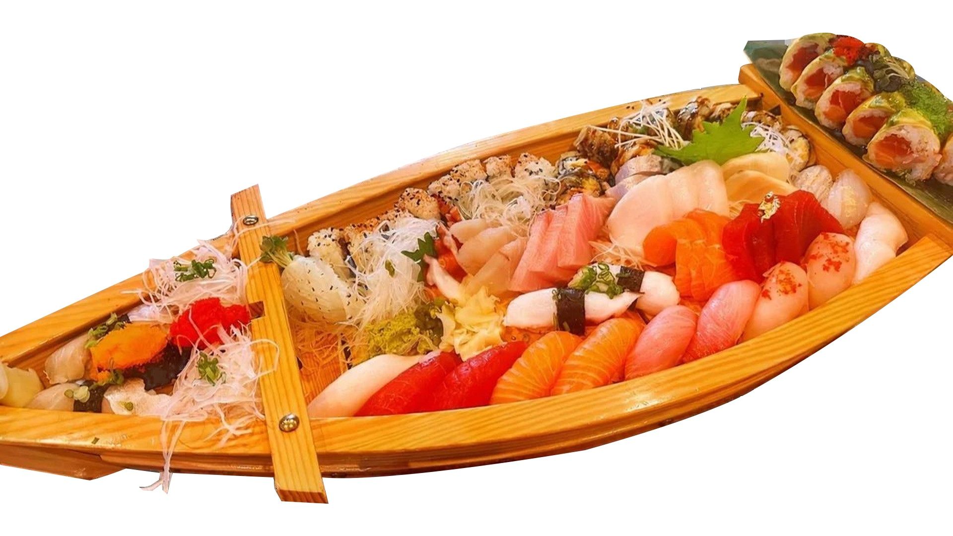 Chef's choices of 16 pcs sashimi, 10 pcs sushi, sweet heart roll & sex on the moon roll